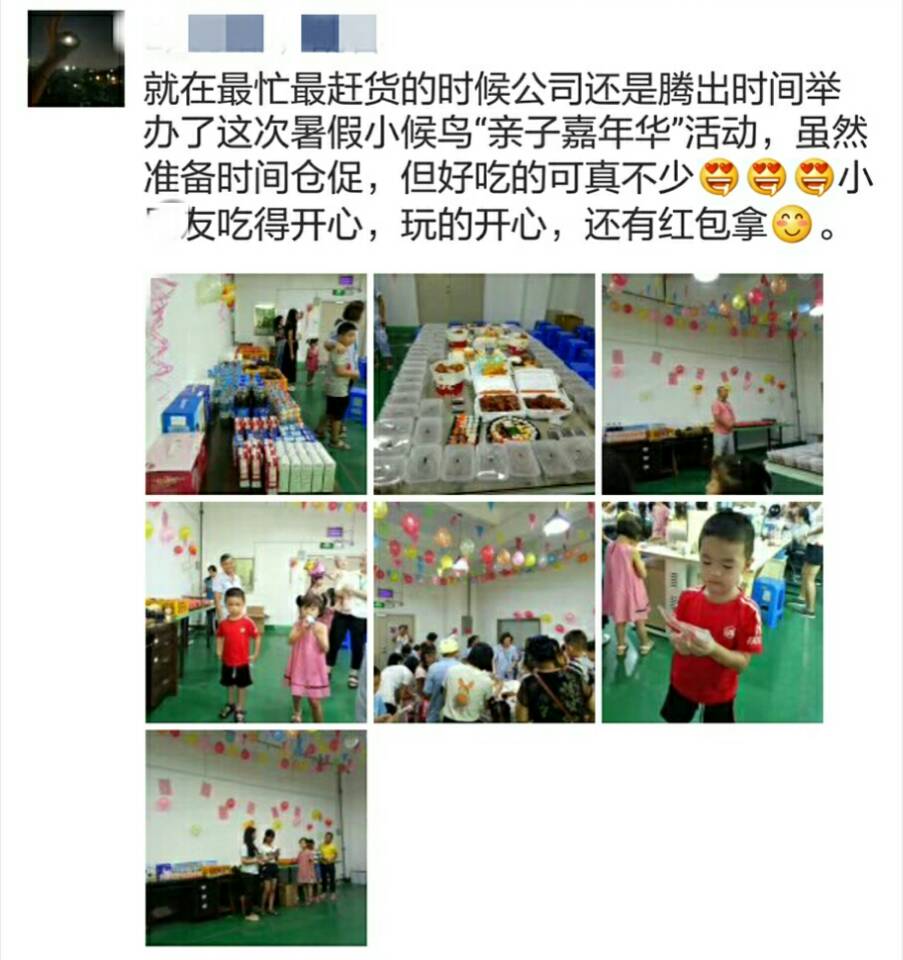 每年暑假的這個(gè)時(shí)候,正是制造企業(yè)一年當(dāng)中最為繁忙的時(shí)候,適逢小候鳥們赴深與父母共聚歡樂(lè)時(shí)光的季節(jié),雅香麗化妝用品(深圳)有限公司董事長(zhǎng)林董認(rèn)為,員工不只是家之棟梁,更是企業(yè)之根本,再忙,也要抽出時(shí)間來(lái)為員工舉辦一場(chǎng)有聲有色的親子嘉年華活動(dòng)。此舉盡顯大企業(yè)家博愛風(fēng)范!